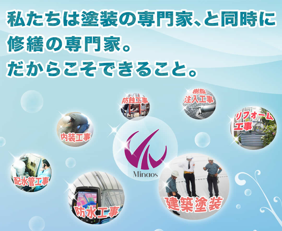 建物は使ってみて初めて、その建物固有の問題や使う人との相性が見えてきます。 新築のときはわからなかった、それらの問題を見極め、修繕の専門家ならではの、 視野の広い改修工法を提案することにより、その建物が本来持つはずだった ”快適さ ”を最大限に引き出すことができます。 それは第二の新築ともいえるものです。